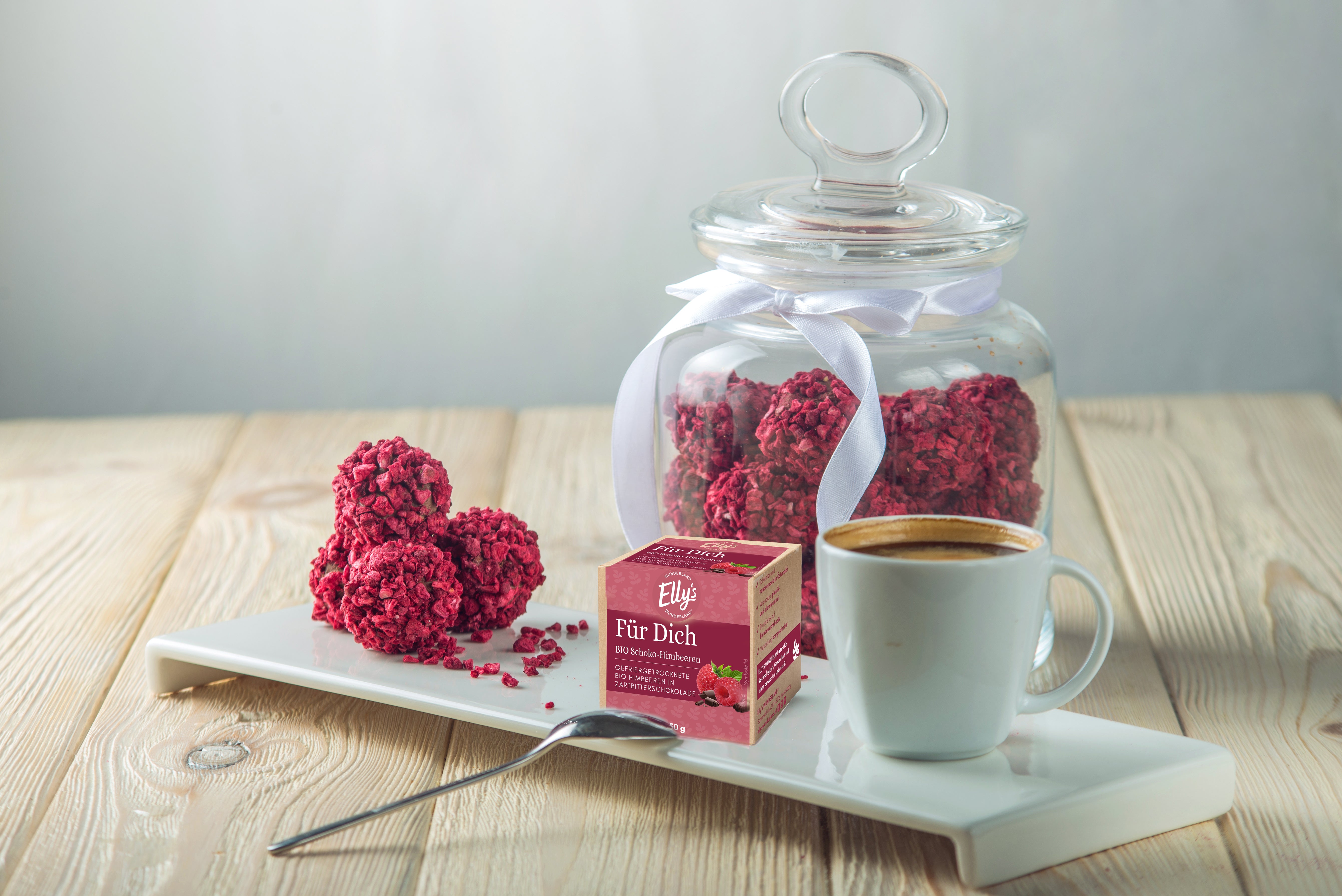 Die gefriergetrockneten Bio-Himbeeren sind frei von künstlichen Zusatzstoffen und nach Wunsch von 25 Gramm bis 45 Gramm erhältlich. Unser Schokoladensortiment wird mit frischen Bio-Himbeeren gefüllt, die sorgfältig gefriergetrocknet werden. Darüber hinaus bieten wir Ihnen auf Wunsch individuelle un-schokolierte Waren an, die auf Ihre Bedürfnisse abgestimmt sind.