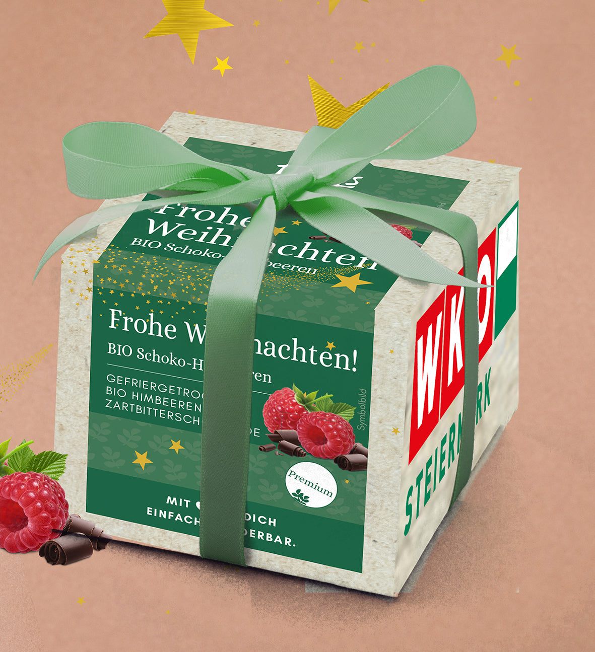 Wir verwenden nur die besten Bio-Himbeeren für unsere Geschenkwürfel. Unsere Schokolade ist von Fair Trade Qualität und wird von erfahrenen Chocolatiers aus Österreich zu einem wahren Kunstwerk verarbeitet.